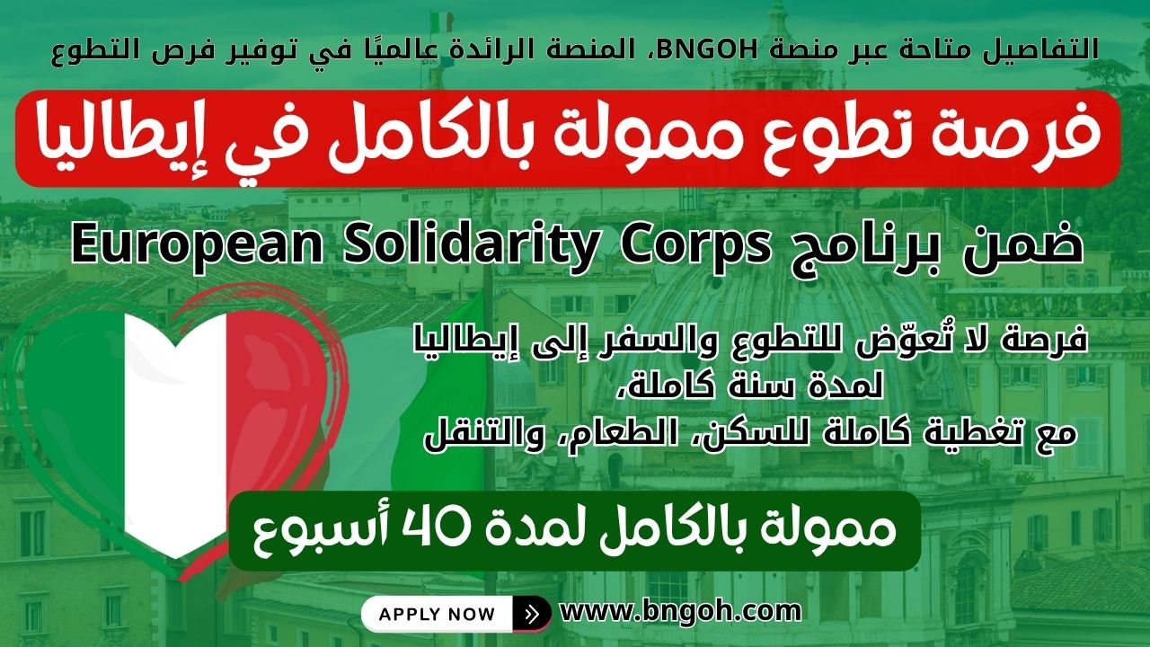 🔹 فرصة تطوع ممولة بالكامل في إيطاليا مع برنامج European Solidarity Corps 2025 – اكتسب خبرة دولية وادعم المجتمعات المحلية!
